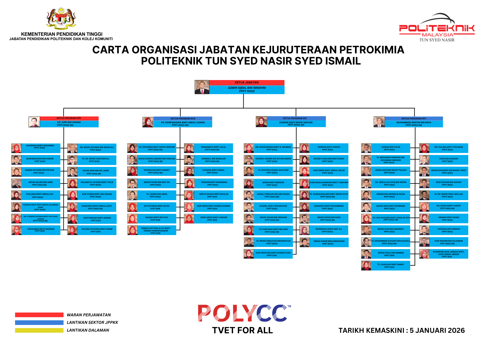 Selamat datang ke laman web Jabatan Kejuruteraan Petrokimia (JKPK), Politeknik Tun Syed Nasir Syed Ismail (PTSN). Seiring dengan Visi dan Misi PTSN, Jabatan Kejuruteraan Petrokimia berusaha menjadi peneraju institusi TVET yang unggul.