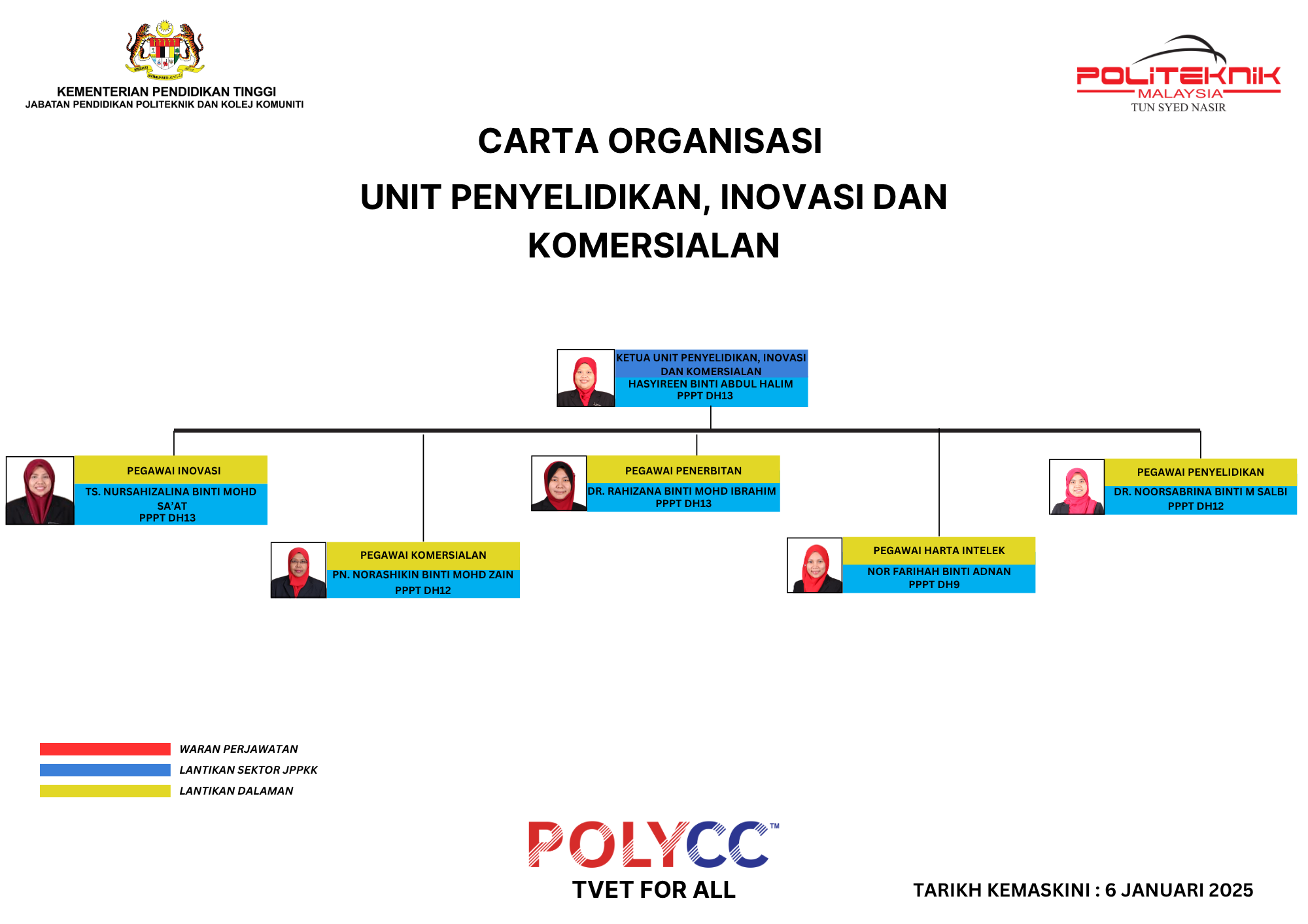 1. Menguruskan dan memantau aktiviti penyelidikan, inovasi dan pengkomersialan mengikut pelan strategik Politeknik Tun Syed Nasir Syed Ismail.